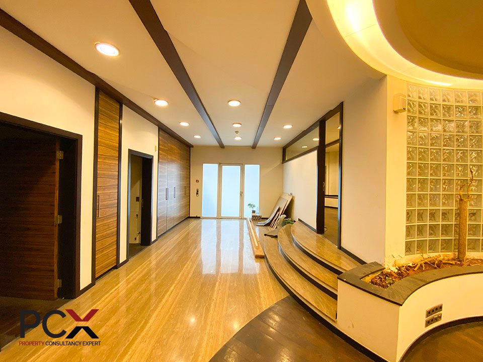 A modern office of 350 sqm, comprised of large reception, 5 rooms and 3 glorious toilet.The leisure apartment offers a spacious layout and premium facilities for your comfort and wellness such as central air conditioning and heating.