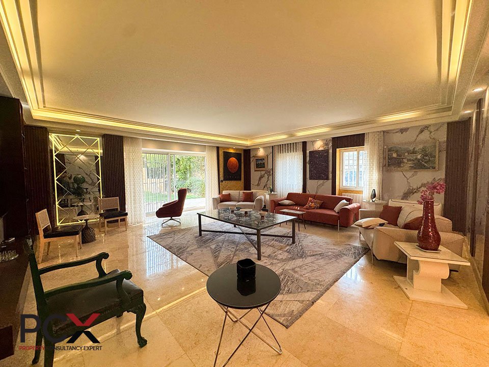 A modern residency of 600 sqm furnished with luxurious furniture and finely decorated to meet your sophisticated taste, comprising of stunning 4 bedrooms with built in wardrobes, 5 glorious bathrooms, family room, balcony with view a maid’s room and a storage room. The mix between wood and marble flooring enhances the luxury and elegancy of the space. The leisure apartment offers astonishing views, a spacious layout and premium facilities for your comfort and wellness such as central air conditioning and heating. You can enjoy your time and relax in your private garden that is convenient in this spacious villa.